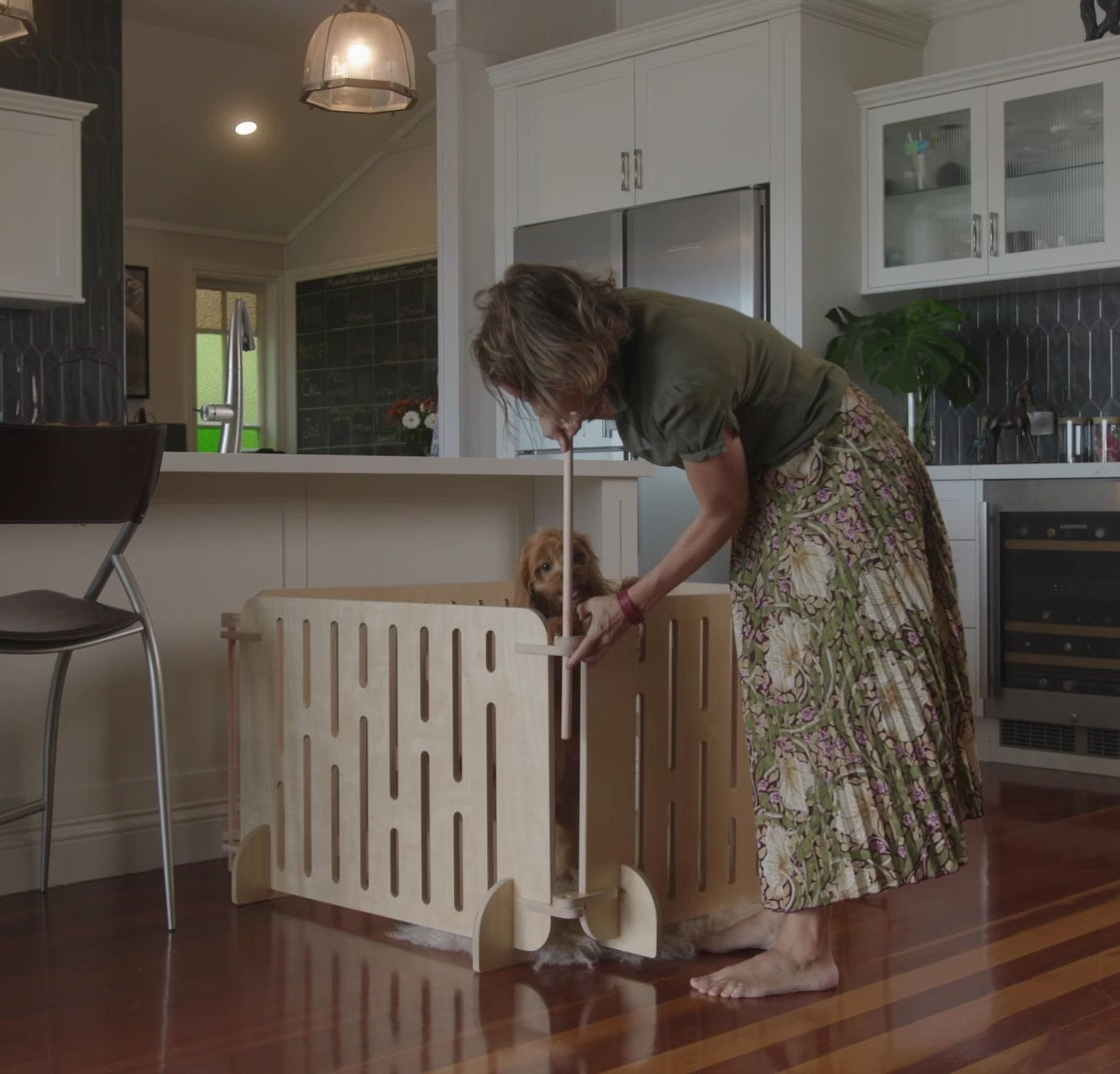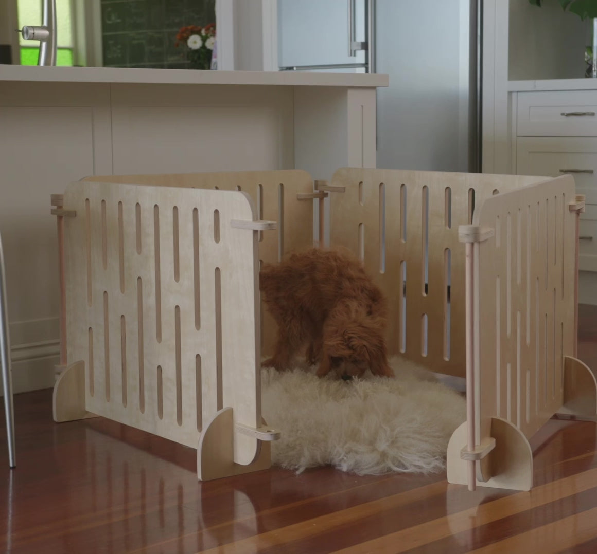 Buddy is an Aussie dog favourites, doubling up as both a playpen and stand alone gates, made from clear-coated premium birch plywood. Designed and made in Australia to last, these elegant enclosures have room for your pup's food and water bowls, as well as their favourite toys.